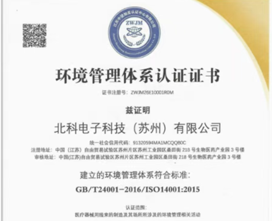 近日,北科电子科技(苏州)有限公司成功通过ISO14001环境管理体系认证。这标志着公司在环境管理的规范化、标准化与国际化方面取得关键突破,为可持续发展奠定了坚实的体系基础。