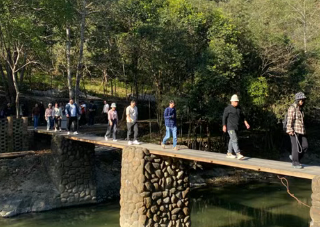 篁岭的晒秋广场上,火红的辣椒、金黄的玉米与黛瓦白墙构成一幅立体画卷。我们穿梭于"天街"古巷,体验"怪屋"空间错位的奇妙,登上垒心桥,脚下是300米深的峡谷,远处是层叠的梯田与古村,快门声与惊叹声交织成最鲜活的团队记忆。